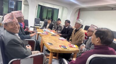 काठमाडौं– नेपाली कम्युनिष्ट पार्टी (नेकपा) र जनता समाजवादी पार्टी (जसपा) बीचको एकता वार्ता निर्णायक दिशातर्फ अगाडि बढेको छ ।      नेकपाको केन्द्रीय कार्यालय पेरिसडाँडामा जारी वार्ता सकारात्मक मोडमा अघि बढेको वार्तामा सहभागी नेकपाका नेता देव गुरुङले जानकारी दिए ।  वार्तामा नेकपाका तर्फबाट गुरुङसहित नेताहरू प्रमेश हमाल, वेदुराम भुसाल, गिरिराजमणि पोखरेल, शक्ति बस्नेत, प्रकाश ज्वाला […]