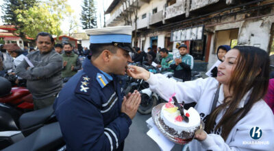 काठमाडौं– उपत्यका ट्राफिक प्रहरी कार्यालयले चोरीका ५० वटा दुई पांग्रे सवारी सम्बन्धित धनीलाई फिर्ता गरेको छ । एक समारोहकाबीच ट्राफिक प्रहरीले काठमाडौंका विभिन्न स्थानबाट चोरी भएका दुई पांग्रे सवारी फेला पारेर सम्बन्धित धनीलाई फिर्ता दिएको हो । आफ्नो सवारी फिर्ता पाए पछि सवारी धनीहरूले केक काटेर ट्राफिकलाई धन्यवाद दिएका छन् । तस्बिरहरू : नेपाल फोटो […]