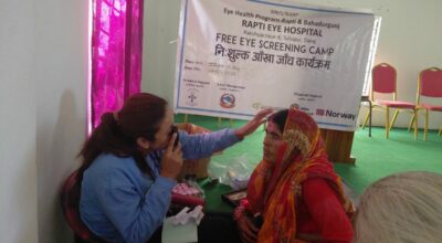 दाङ– दाङको तुलसीपुर उपमहानगरपालिका–१२ हरिपौरीकी ५३ वर्षीया रस्मिता दाहालले यसअघि आँखा जाँच गरेकी थिइनन् । तर, अहिले गाउँमै शिविर आएपछि जाँच गर्दा दाँया आँखामा मासु पलाएको रहेछ । स्वास्थ्यकर्मीले उनलाई तत्काल शल्यक्रिया गर्ने सुझाव दिए । ‘पहिले कहिल्यै जाँच गरेकी थिइन’, उनले भनिन्, ‘अहिले जाँच गर्दा आँखामा मासु पलाएको रहेछ, शल्यक्रिया गर्ने भन्नुभएको छ ।’ […]