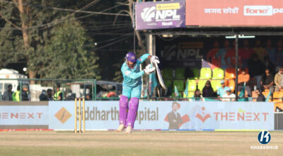 काठमाडौं – नेपाल प्रिमियर लिग (एनपीएल) सिजन २ अन्तर्गत मंगलबारको खेलमा लुम्बिनी लायन्सविरुद्ध पहिला ब्याटिङ गरेको काठमाडौं गोर्खाजले सस्तैमा दुई ब्याटर गुमाएको छ । कीर्तिपुरस्थित त्रिवि अन्तर्राष्ट्रिय क्रिकेट रंगशालामा टस हारेर पहिला ब्याटिङमा उत्रिएको काठमाडौंले चार ओभरको तेस्रो बलमा ब्याटर रसिद खानलाई गुमाएको हो । १० बलमा २ चौकाको सहयोगमा १४ रन जोडेका रसिदलाई चितवनका […]