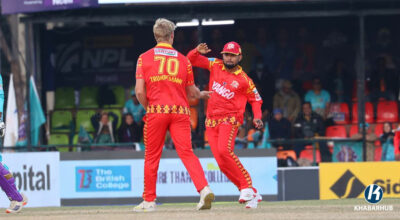 काठमाडौं- लुम्बिनी लायन्सले पहिलो विकेट गुमाएको छ । नेपाल प्रिमियर लिग एनपीएल अन्तर्गत मंगलबारको खेलमा काठमाडौं गोर्खाजका मिलन्द कुमारले सन्दीप जोरालाई आउट पारे । जोरा २ ओभर २ बलमा कुमारको बलमा रशिद खानमार्फत् क्याच आउट भए । आउट हुनुअघि ५ बलमा ७ रन बनाए । हाल काठमाडौंले दिएको १ सय ५८ रनको लक्ष्य पछ्याउँदै लुम्बिनीले […]