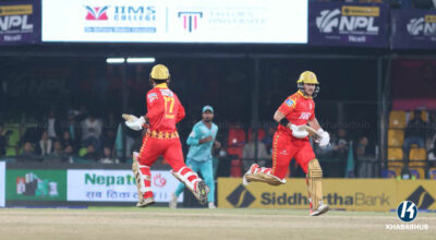 काठमाडौं– नेपाल प्रिमियर लिग (एनपीएल) सिजन २ अन्तर्गत मंगलबारको खेलमा जवाफी ब्याटिङमा उत्रिएका लुम्बिनी लायन्सका तीन ब्याटर आउट भएका छन् । तेस्रो विकेटका रुपमा गुलबदिन नैब सस्तैमा आउट भएका हुन् । उनले ६ बलमा १ छक्का र १ चौकाको सहयोगमा ११ रन जोडे । शाहब आलमले उनलाई आउट गराएका हुन् । त्यसअघि ओपनर डीआर्सी सर्ट […]