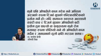 आधुनिक चिकित्सा विज्ञानले विश्वभर नै स्वास्थ्य क्षेत्रमा ठूलो फड्को मारेको छ। केही समयअघि ज्यानै लिने डरलाग्दा रोगका रुपमा लिइएका रोग पनि सामान्य बन्दै गएका छन्। बिगत एक दशक अगाडिको स्वास्थ्य सेवाको तुलना गर्ने हो भने धेरै राम्रो सफलता हात पारेको छ। चिकित्सकको सल्लाह बिना आफुखुसी औषधी सेवन गर्ने परिपाटीका कारण यो चुनौतिको विषय पनि बनेको […]