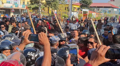 धनगढी- सुदूरपश्चिमको राजधानी धनगढीमा नेकपा एमालेनिकट युवा संघ नेपालका कार्यकर्ताहरूले नाराबाजी गरिरहेका जे-नजी युवाहरूलाई कुटपिट गरेका छन्। धनगढी बजारको कभर्डहल अगाडि एमाले पोलिटब्युरो सदस्य महेश बस्नेतविरूद्ध चर्को नाराबाजी गरिरहेका २४ जना बढी जेन-जीको समूहमाथि युवा संघका कार्यकर्ता जाइलागेका हुन् । बस्नेतको बिरोधमा सडकमा प्लेकार्डसहित चर्को नाराबाजीसहित प्रदर्शनरत जेन-जीहरूलाई मोटरसाइकलमा आएका युवा संघका कार्यकर्ताले कुटपिट गरेका […]