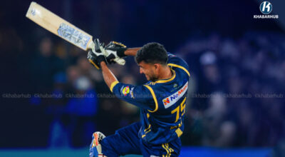काठमाडौं – नेपाल प्रिमियर लिग (एनपीएल) अन्तर्गत कर्णाली याक्सविरुद्ध विराटनगर किङ्ग्सका बसिर अहमदले अर्धशतक प्रहार गरेका छन् । सिजनको १६ औं खेलमा जावाफी ब्याटिङ क्रममा बसिरले अर्धशतक पूरा गरेका हुन् । उनले ३७ बलमा ३ चौका र २ छक्काको सहयोगमा ५० रन पूरा गरेका हुन् । यो सिजनको १७ औं अर्धशतक हो । यही खेलमा […]
