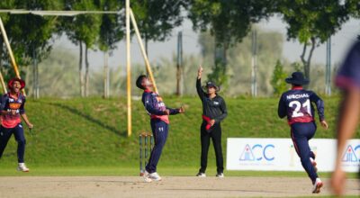काठमाडौं– संयुक्त अरब इमिरेट्स (युएई) मा जारी एसिसी पुरुष यु-१९ प्रिमियर कप क्रिकेटको उपाधिका लागि नेपाल र आयोजक युएईबीच प्रतिस्पर्धा हुने भएको छ । उपाधिका लागि सोमबार बिहान १०ः३० बजे अजमानस्थित करवान मैदानमा खेल हुनेछ । नेपालले मलेसियालाई नौ विकेटले हराएर उपाधि नजिक पुगेको हो । युएईले भने ओमानलाई आठ विकेटले पराजित गर्दै फाइनलमा स्थान […]