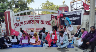 काठमाडौं- जनता समाजवादी पार्टी, नेपालले देशभरीकै जिल्ला प्रशासन कार्यालय अगाडि शान्तिपूर्ण धर्ना तथा विरोध प्रदर्शन गरेको छ । २८ बुँदे माग सम्बोधनको लागि सरकारलाई दबाब दिन प्लेकार्ड र ब्यानरसहित जसपा नेपालले प्रशासन कार्यालय अगाडि आइतबार धर्ना र विरोध प्रदर्शन गरेको हो । जसपा नेपालको पूर्वघोषित आन्दोलनको कार्यक्रम अनुसार तीनदिनदेखि लगातार देशव्यापी प्रशासन कार्यालय अगाडि शान्तिपूर्ण […]