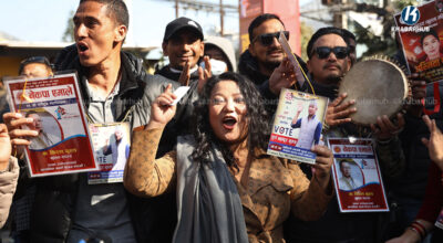 काठमाडौं- नेकपा एमालेको ११औं महाधिवेशनको निर्वाचन कार्यक्रमअनुसार मंगलबार दिउँसो ४ बजेदेखि मतदान प्रक्रिया सुरु हुँदैछ । अहिले नेता, कार्यकर्ता र प्रतिनिधिहरू आफ्नो आफ्नो उम्मेदवारलाई भोट माग्न व्यस्त छन् । जसमा गायिका ज्योति मगर लगायतका कलाकारहरू पनि उपस्थित छन् ।