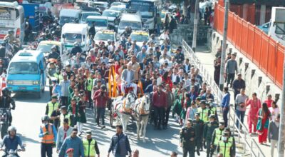 काठमाडौं– काठमाडौं महानगरपालिका–८ जयवागेश्वरीस्थित गायत्री मार्गमा रहेको छैटौँ शताब्दीको ऐतिहासिक ब्रह्मा मन्दिरमा मूर्ति पुनःस्थापना गरिएको छ । काठमाडौं महानगरपालिका सम्पदा तथा पर्यटन समिति संयोजक एवं वडा नम्बर ८ का वडाअध्यक्ष आशामान सङ्गत, महानगरपालिकाकी उपप्रमुख सुनिता डङ्गोलले आज विधिपूर्वक पूजा गरी उक्त मूर्ति पुनःस्थापना गरेका हुन् । छैटौँ शताब्दीमा बनेको ऐतिहासिक ब्रह्मा मन्दिरको मूर्ति विगत ४० […]