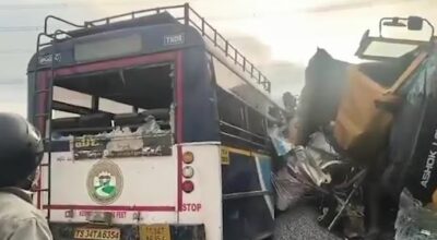 क्षिणी भारतमा बससँग ट्रक ठोक्किँदा २० जनाको मृत्यु, दर्जनौँ घाइते