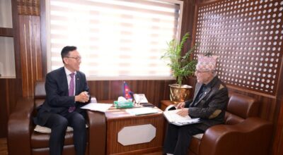 काठमाडौँ– अर्थमन्त्री रामेश्वरप्रसाद खनालसँग नेपालका लागि कोरिया गणतन्त्रका राजदूत पार्क ते यङले शिष्टाचार भेट गरेका छन् । अर्थ मन्त्रालयमा आज भएको उक्त भेटमा अर्थमन्त्री खनालले कोरिया र नेपालबीच रहेको दुईपक्षीय कूटनीतिक सम्बन्धको चर्चा गर्दै कोरिया सरकारले प्रदान गर्दै आएको निरन्तर सहयोगका लागि धन्यवाद व्यक्त गरे। साथै कोरियाको सहयोगमा सञ्चालन भएका आयोजना तथा कार्यक्रमहरूको अवस्था सन्तोषजनक रहेको […]