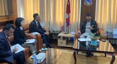 काठमाडौं– सञ्चार तथा सूचना प्रविधिमन्त्री जगदीश खरेलसँग नेपालका लागि गणतन्त्र कोरिया (दक्षिण कोरिया) का राजदूत पार्क ते यङले भेट गरेका छन्। सिंहदरबारस्थित मन्त्रालयमा भएको भेटमा नेपाल तथा गणतन्त्र दक्षिण कोरियाबीचको द्विपक्षीय ऐतिहासिक सम्बन्ध, द्विपक्षीय सहकार्य तथा वर्तमान अवस्था र नेपाल सरकारका प्राथमिकताका सम्बन्धमा छलफल भएको छ। भेटमा सञ्चारमन्त्री खरेलले नेपाल र दक्षिण कोरियाबीचको सम्बन्ध, नेपालमा […]