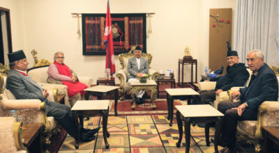 काठमाडौं– राष्ट्रपति रामचन्द्र पौडेलको पहलमा तीन दलका शीर्ष नेता शेरबहादुर देउवा, केपी शर्मा ओली र पुष्पकमल दाहाल तथा अन्तरिम सरकारकी प्रधानमन्त्री सुशीला कार्कीबीच पहिलो पटक शीतल निवासमा वार्ता भएको छ। यो वार्ताले तीन दलका शीर्ष नेता बिदा हुनुपर्ने पक्षमा रहेकी प्रधानमन्त्री कार्की र नेताहरूबीच संवादको ढोका खोलिदिएको छ। नेपाली कांग्रेसका सभापति एवम् पूर्व प्रधानमन्त्री शेरबहादुर […]