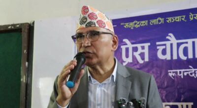 काठमाडौं– नेकपा एमालेका उपाध्यक्ष विष्णु प्रसाद पौडेलले संसद् पुनर्स्थापना गरी संविधान संशोधनमार्फत ताजा जनादेशमा जानुपर्ने बताएका छन् । प्रेस चौतारी नेपाल रुपन्देहीले बुधबार बुटवलमा आयोजना गरेको पत्रकार सम्मेलनमा संविधान बचाउन संसद् पुनर्स्थापना गर्नुपर्ने बताएका हुन् । जेन-जी युवा पुस्ताको समेत माग सम्बोधन गर्ने र संविधान अनुसार मुलुक अगाडि बढाउन संसद् पुनर्स्थापना हुनुपर्ने उनको भनाइ छ […]