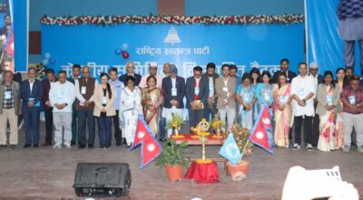 काठमाडौं–  राष्ट्रिय स्वतन्त्र पार्टी (रास्वपा)को केन्द्रीय समितिको विस्तारित बैठक चितवनमा सुरु भएको छ । सौराहास्थित सभा हलमा बैठक बसिरहेको पार्टी प्रवक्ता मनिष झाले जानकारी दिएका छन् ।  दुई दिनसम्म चल्ने बैठकमा कार्यवाहक सभापति डीपी अर्यालले राजनीतिक प्रतिवेदन, उपसभापति स्वर्णिम वाग्लेले आगामी निर्वाचनका लागि वाचा पत्रको प्रस्तावना र महामन्त्री कविन्द्र बुर्लाकोटीले सांगठनिक संरचनाको प्रस्तावना पेश गर्ने […]