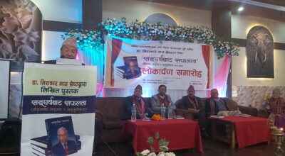 पाटन– वरिष्ठ मनोचिकित्सक तथा सरकारका पूर्वसचिव डा निराकारमान श्रेष्ठद्वारा लिखित ‘सङ्घर्षबाट सफलता जीवनका अनुभव र अनुभूतिहरू’ पुस्तक लोकार्पण गरिएको छ । चिकित्सा क्षेत्रमा ५२ वर्ष योगदान दिनुभएका डा श्रेष्ठद्वारा लिखित उक्त पुस्तक सरकारका पूर्व स्वास्थ्य सचिव एवम् वरिष्ठ बाल रोग विशेषज्ञ डा बद्रीराज पाण्डेले आइतबार कुपन्डोलमा आयोजित कार्यक्रममा लोकार्पण गरेका हुन् । पुस्तक लोकार्पण गर्दै उनले […]